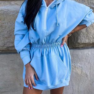 Women’s Rabbit Embroidery Blue Cotton Dress